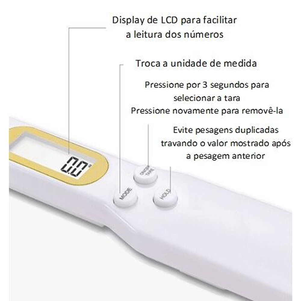 A NutriSpoon é equipada com uma tela digital LED que exibe as medidas em gramas ou onças (g/oz), adaptando-se às suas preferências. Além disso, ela desliga automaticamente após alguns minutos sem uso — economizando bateria e facilitando seu dia a dia.